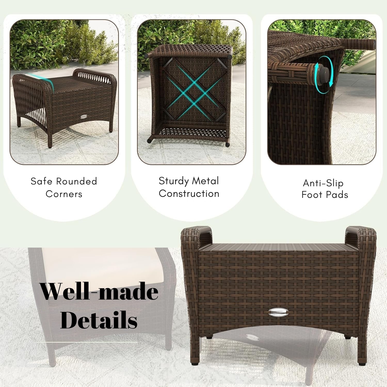 2-Piece Outdoor Rattan Wicker Ottoman Set