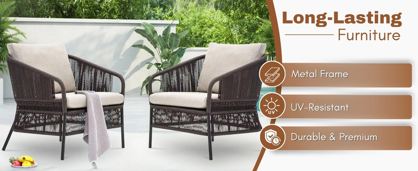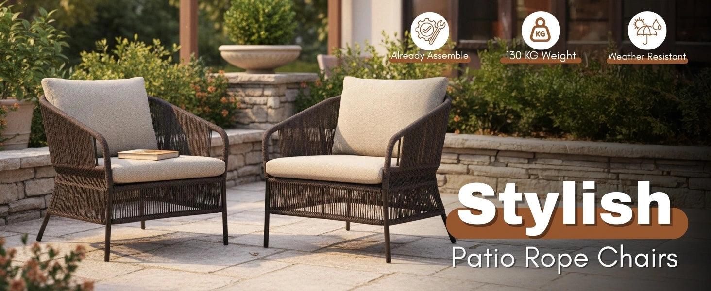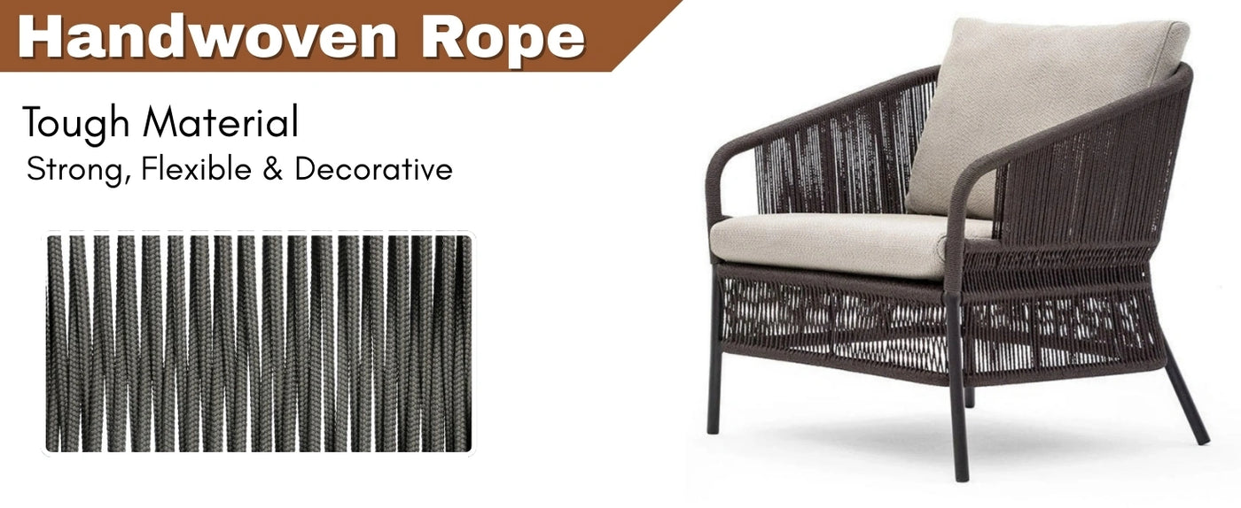 1. Rope Furniture - Clean with mild soap and water, avoid excess moisture, and cover when not in use to prevent wear from sun and rain.