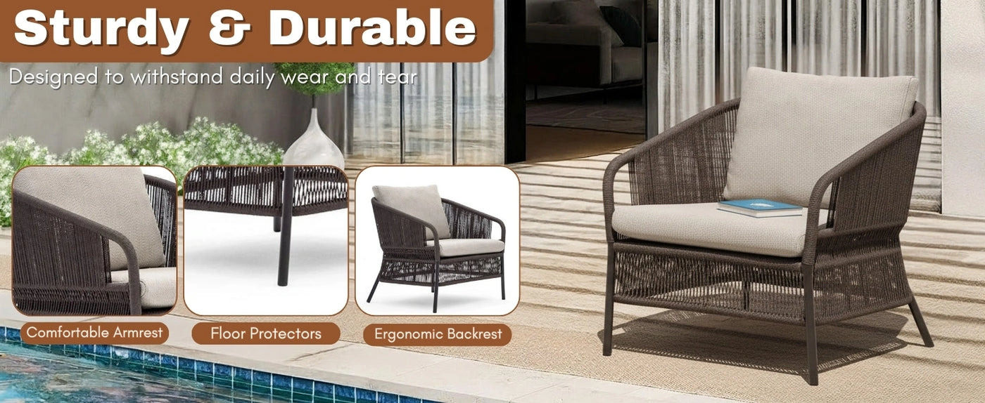 2-Piece Outdoor Rope Single Seater Sofa is backordered and will ship as soon as it is back in stock.