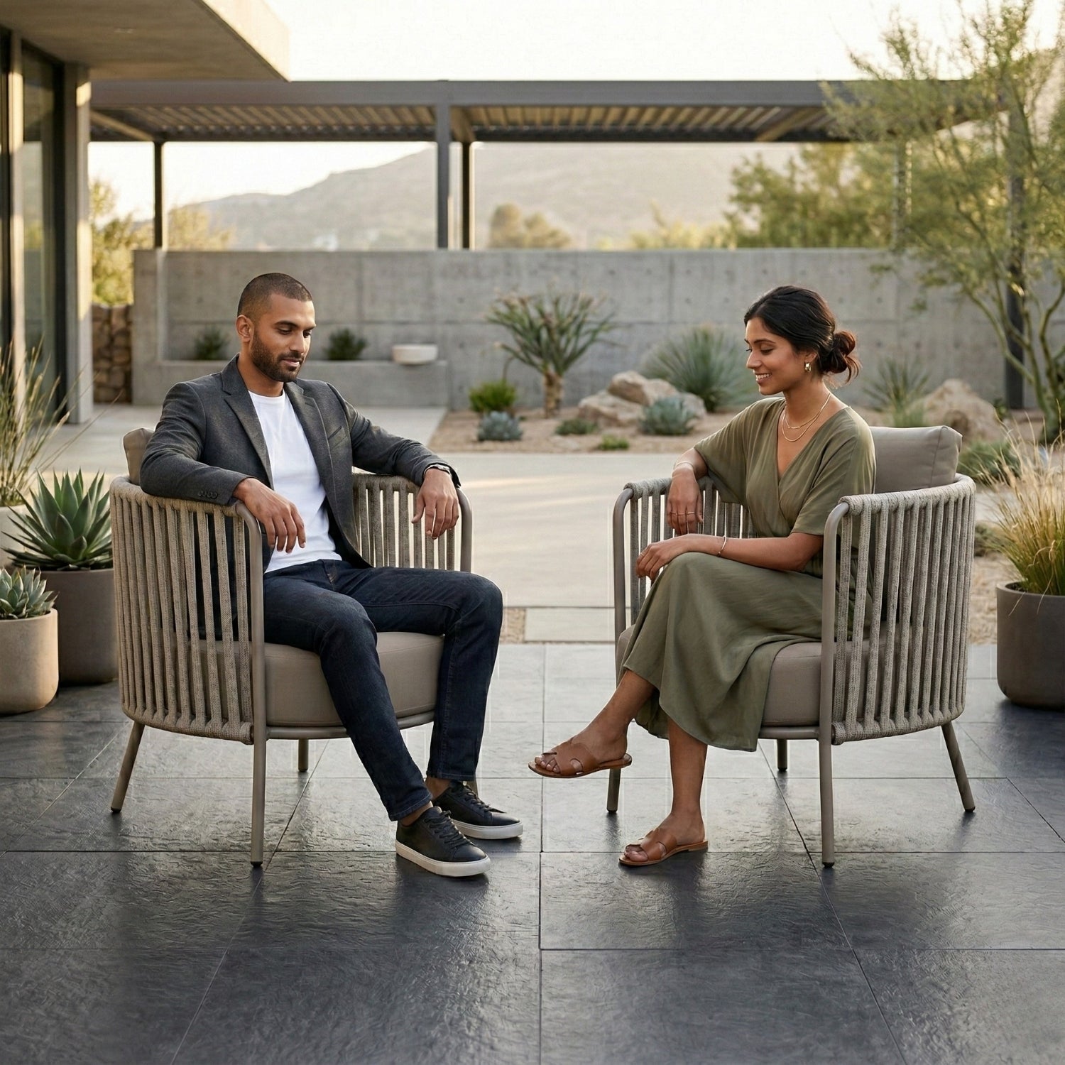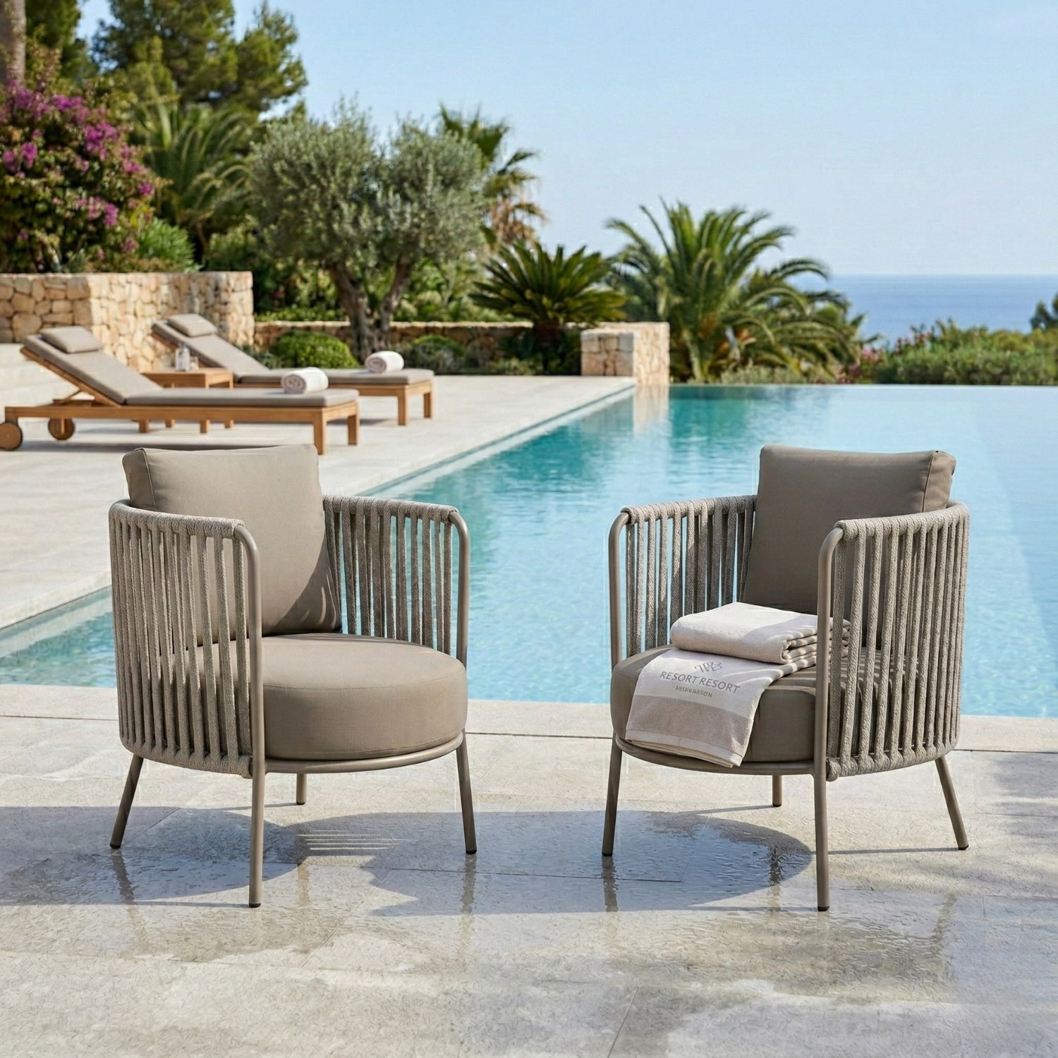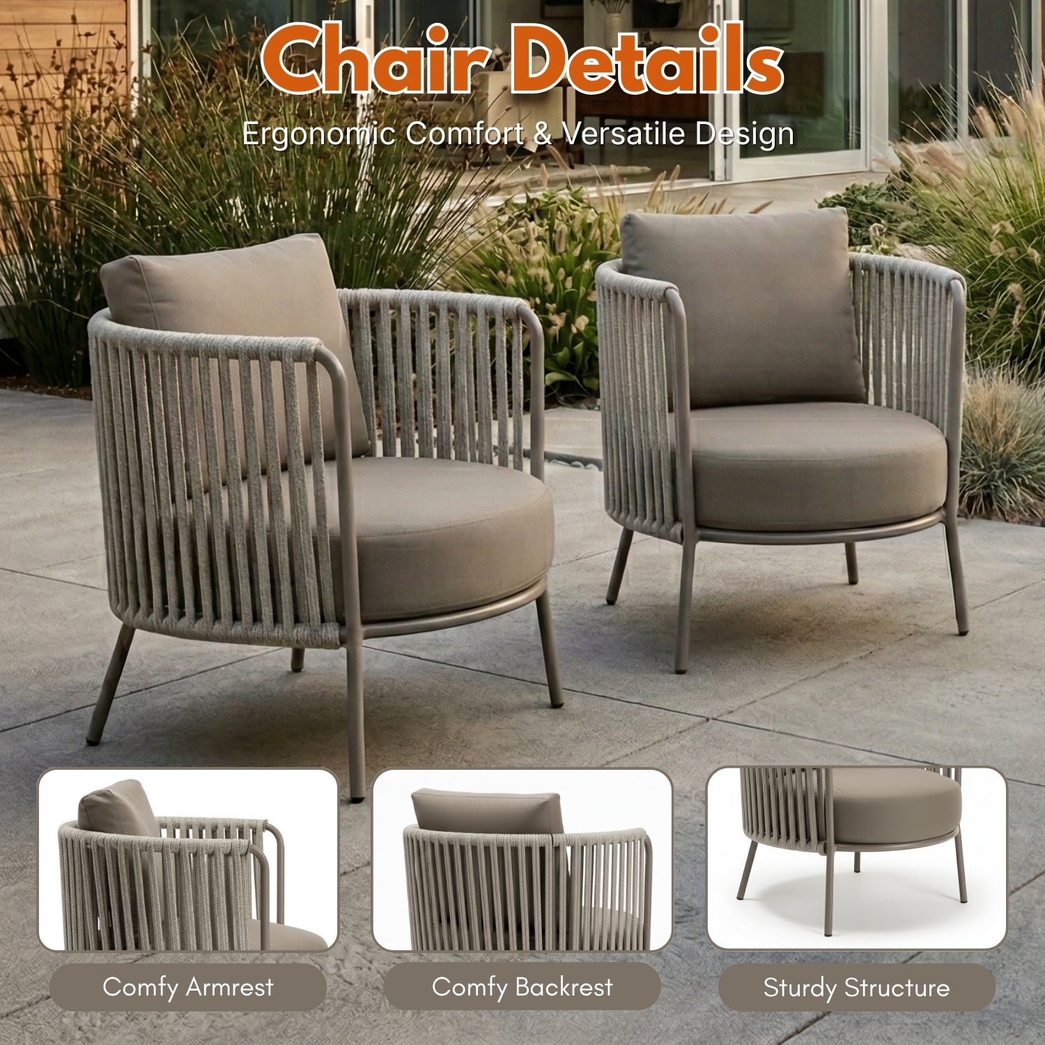 2-Piece Outdoor Rope Sofa Chairs (Grey)