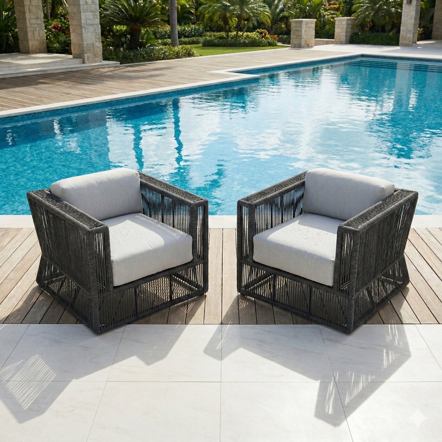 2-Piece Outdoor Rope Sofa Chairs (Grey & Off-White) is backordered and will ship as soon as it is back in stock.