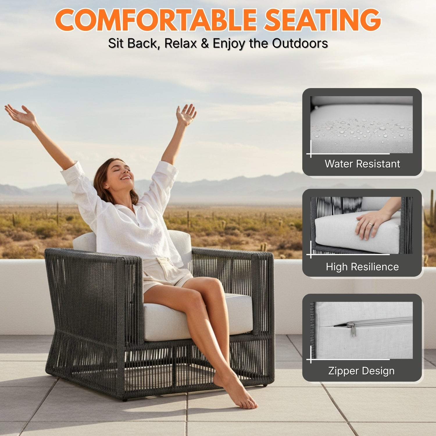 - Cushion Fabric: Water Resistant