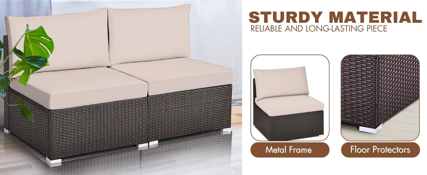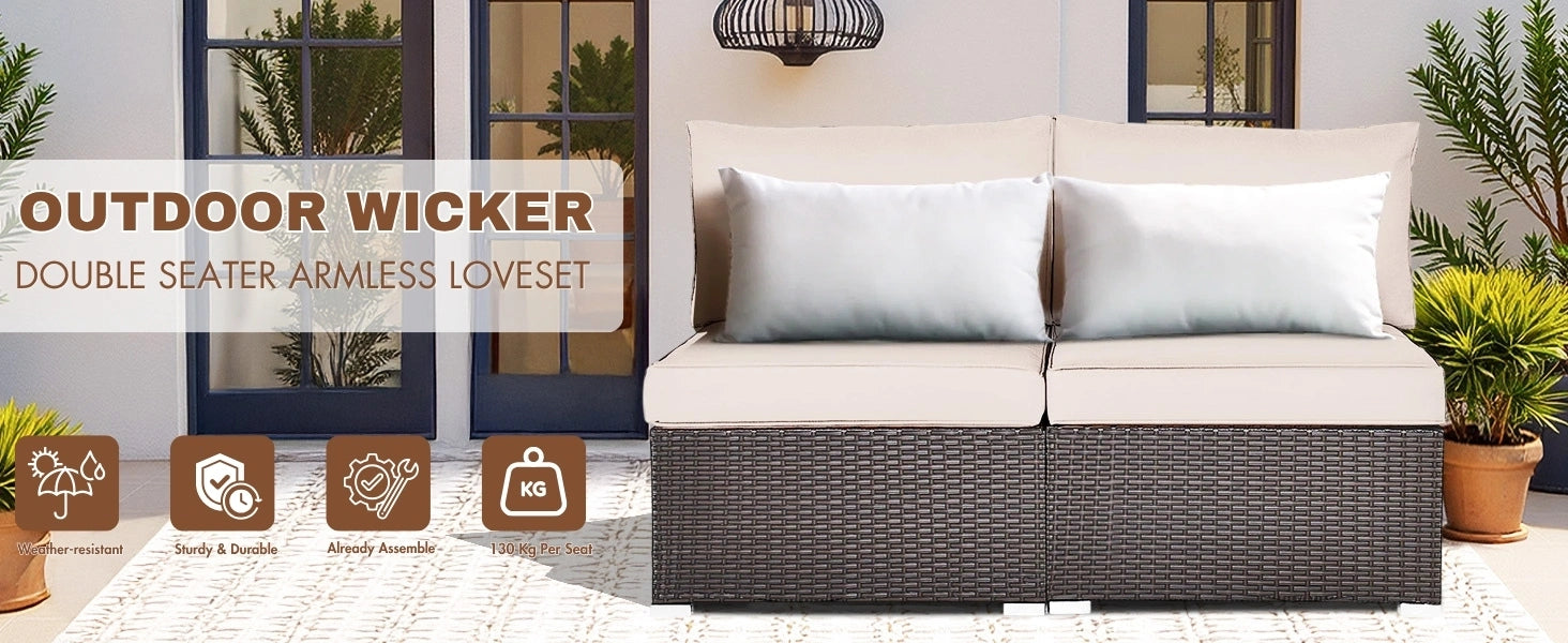 2-Piece Outdoor Wicker Armless Sofa