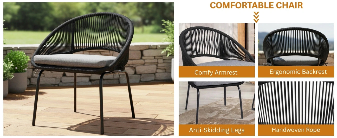 1. Rope Furniture - Clean with mild soap and water, avoid excess moisture, and cover when not in use to prevent wear from sun and rain.