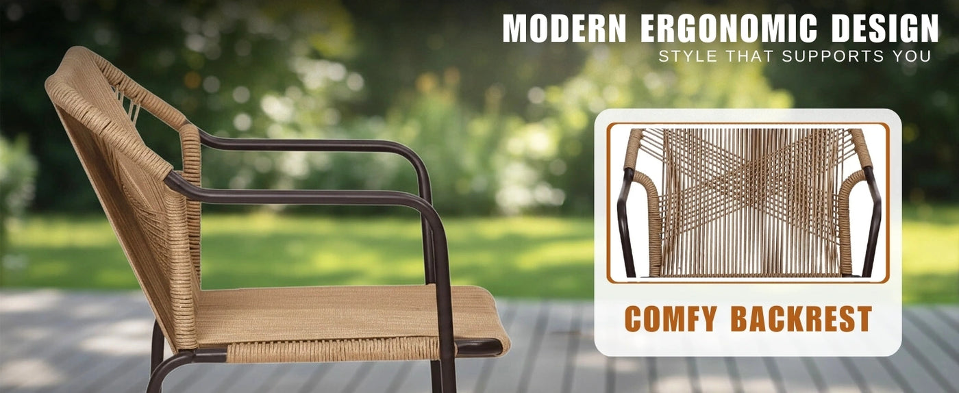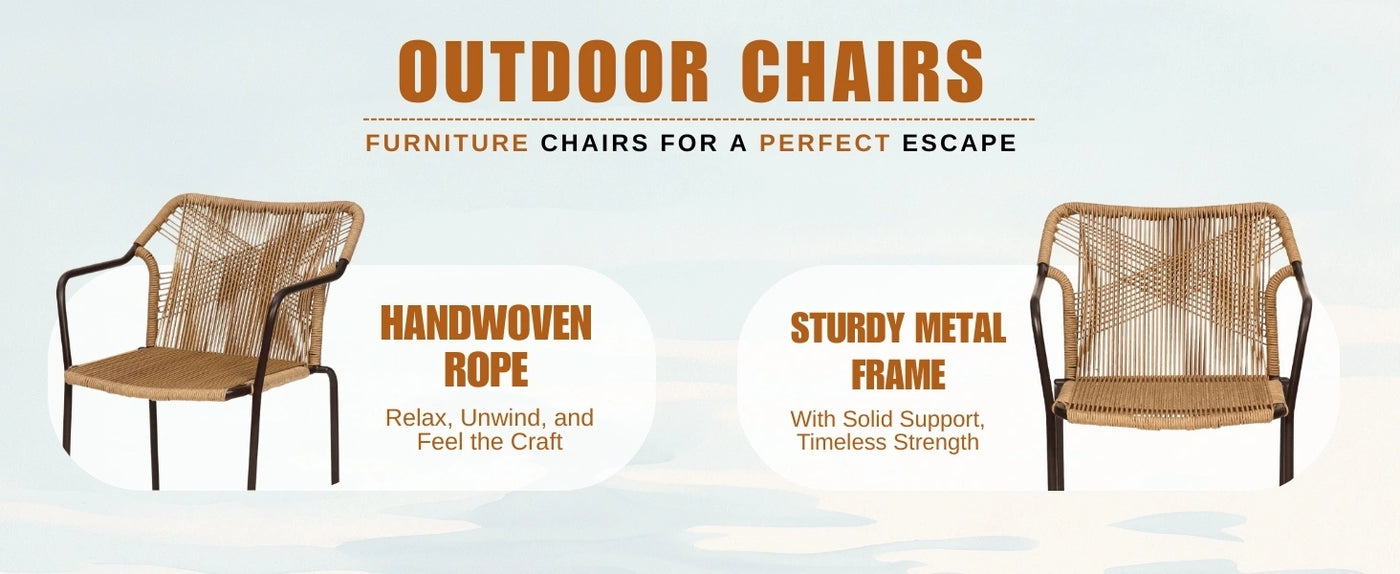 - Handwoven Rope Design : All-weather, breathable, and flexible rope offers modern appeal and supportive seating.