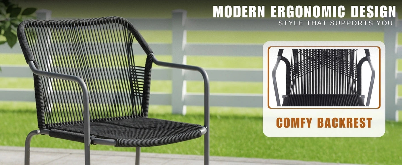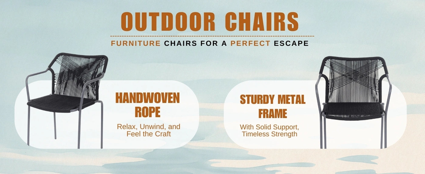 - Handwoven Rope Design : All-weather, breathable, and flexible rope offers modern appeal and supportive seating.