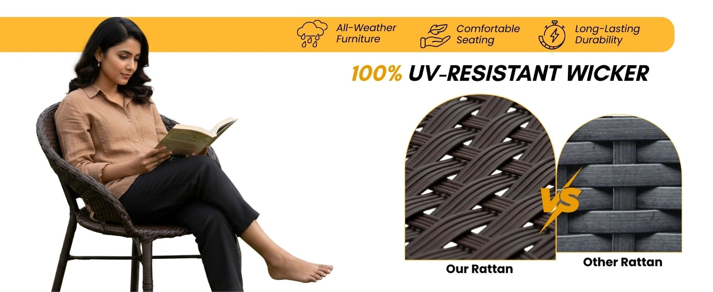 - All-Weather Wicker Construction : Handwoven synthetic rattan is UV-resistant and built to withstand sun, rain, and humidity.