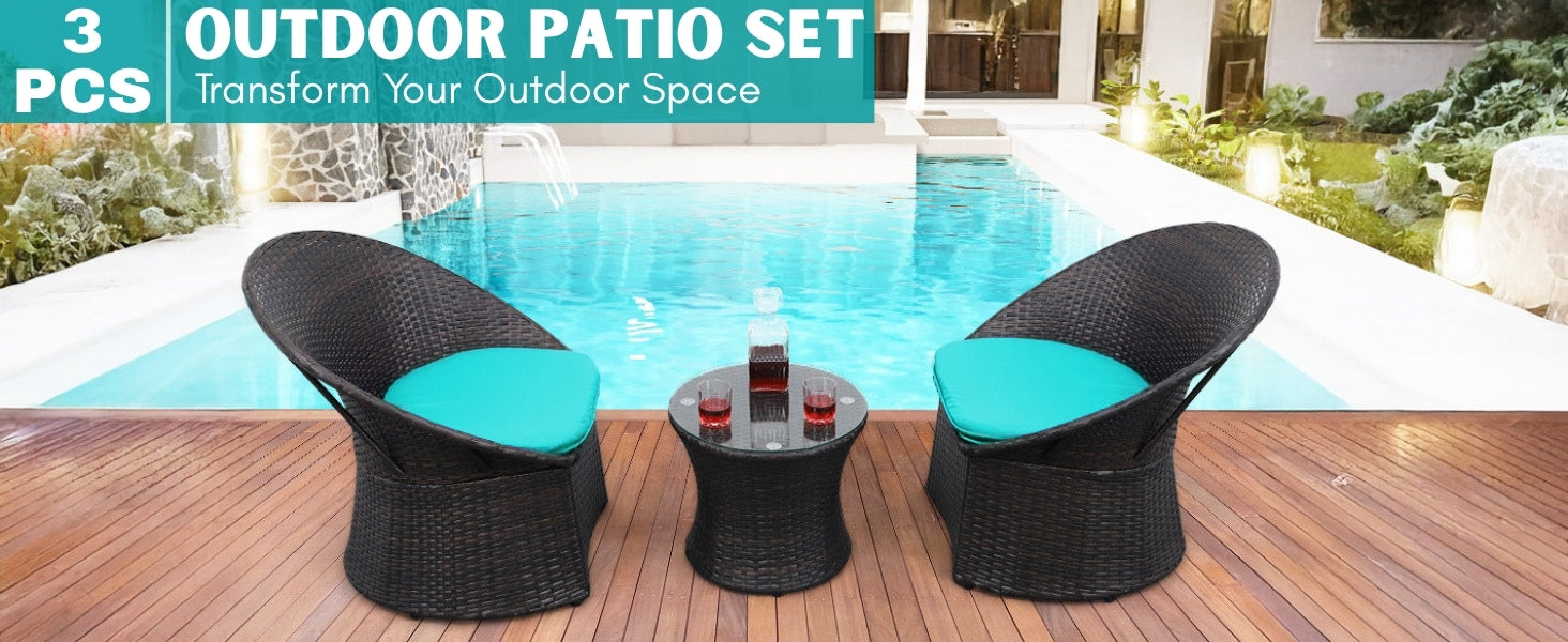 3-Piece Outdoor Rattan Wicker Patio Set