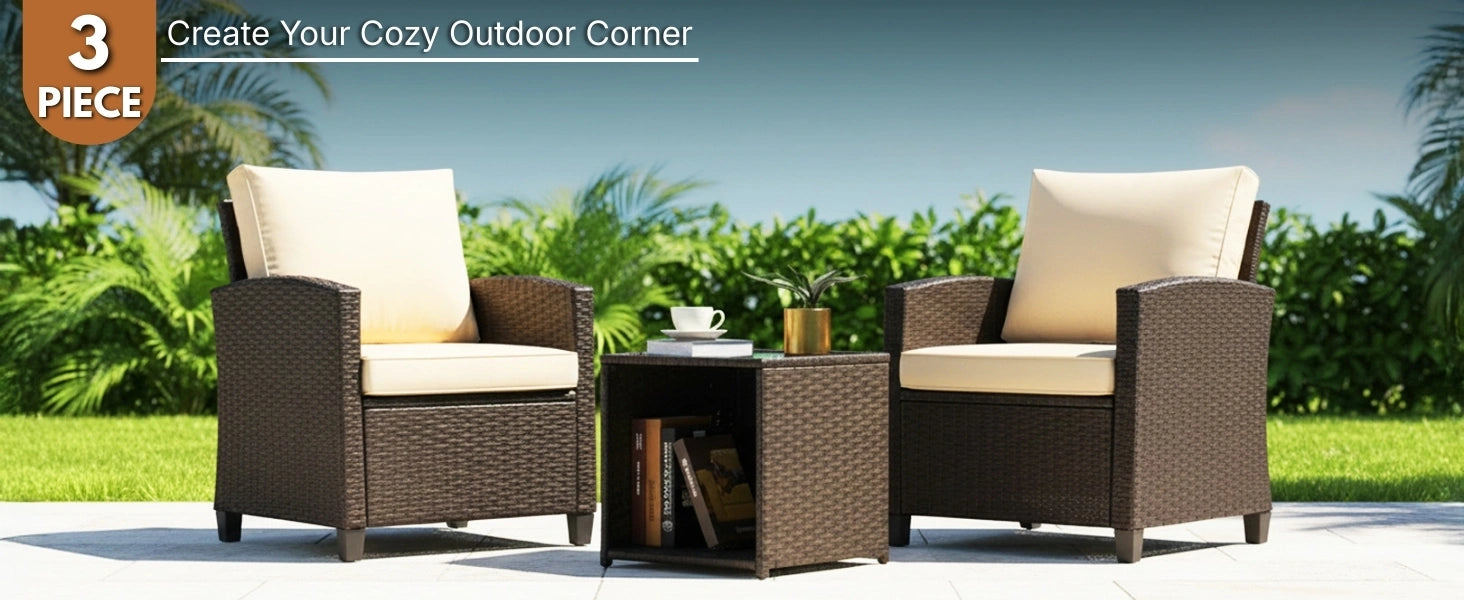 3-Piece Outdoor Rattan Wicker Patio Set is backordered and will ship as soon as it is back in stock.