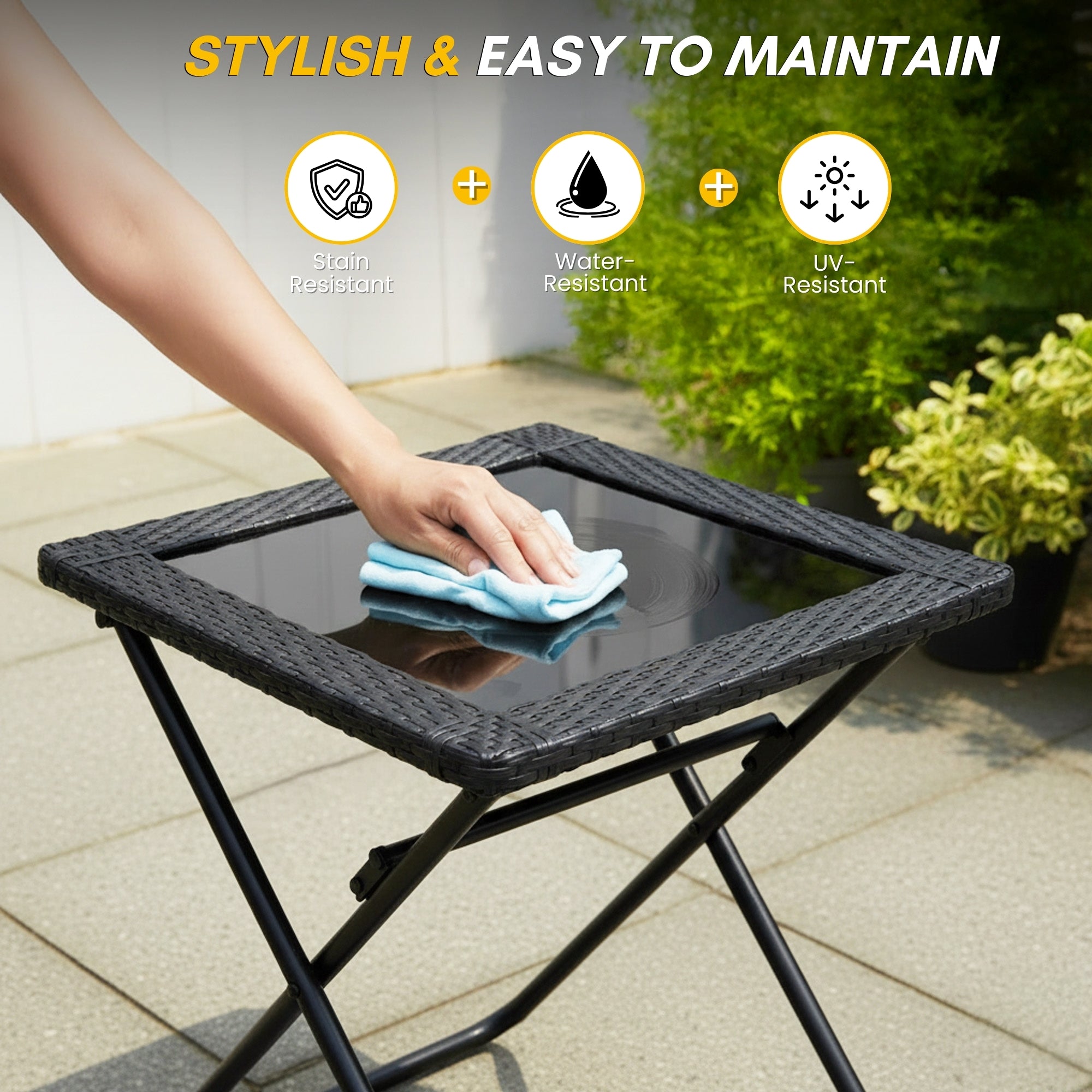 3-Piece Outdoor Wicker Folding Patio Set (Black)