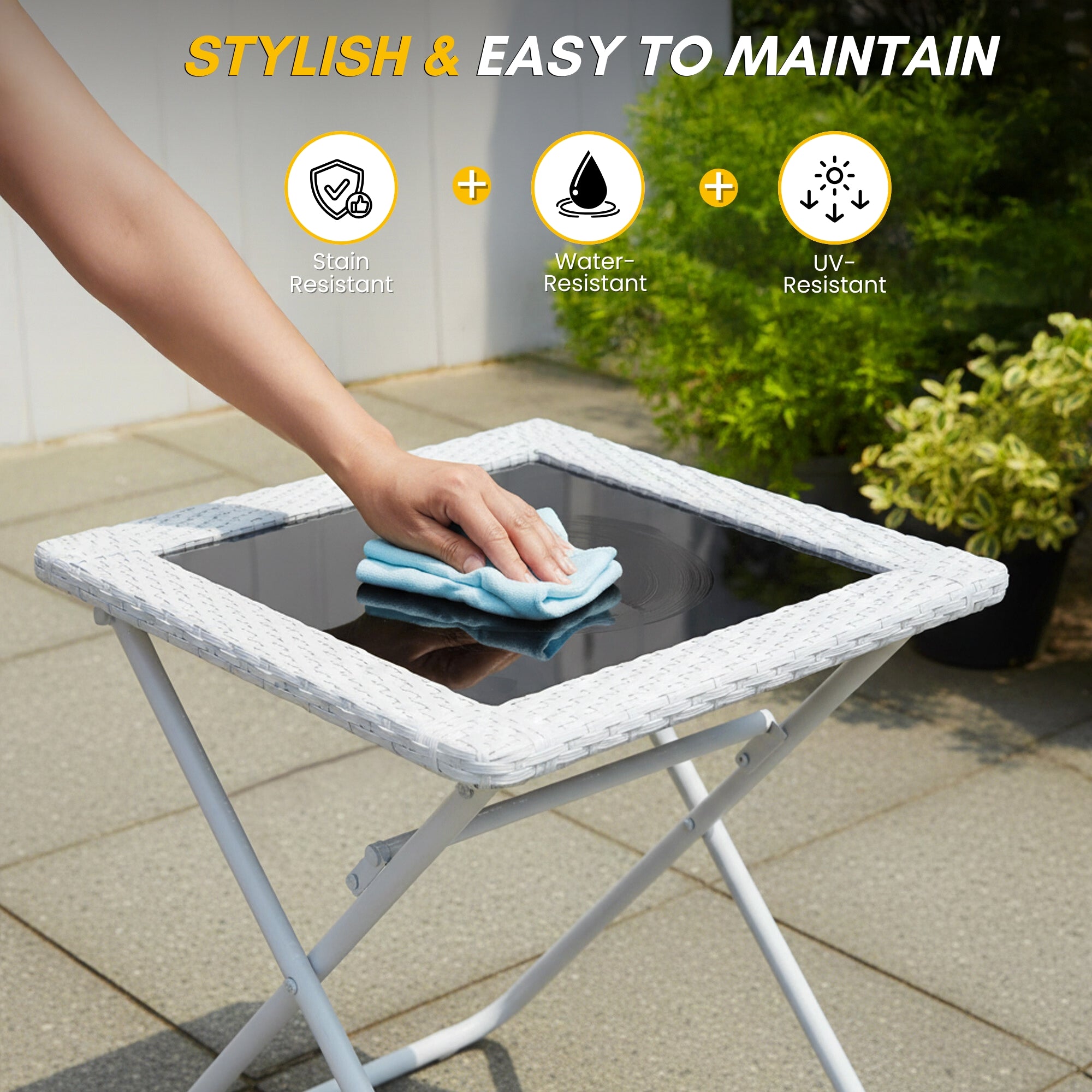 3-Piece Outdoor Wicker Folding Patio Set (White)
