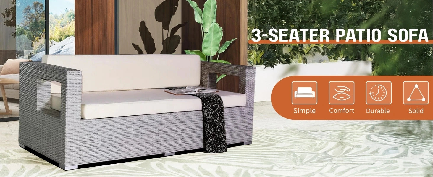 3-Seater Outdoor Rattan Wicker Patio Sofa
