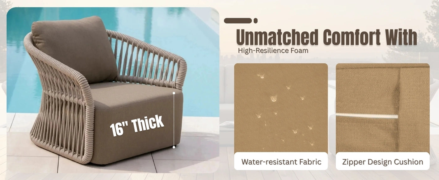 - 16-Inch Ultra-Thick Cushions : Extra-deep cushioning ensures unmatched comfort and relaxation for extended seating.