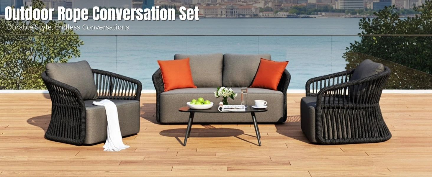 1. Rope Furniture - Clean with mild soap and water, avoid excess moisture, and cover when not in use to prevent wear from sun and rain.