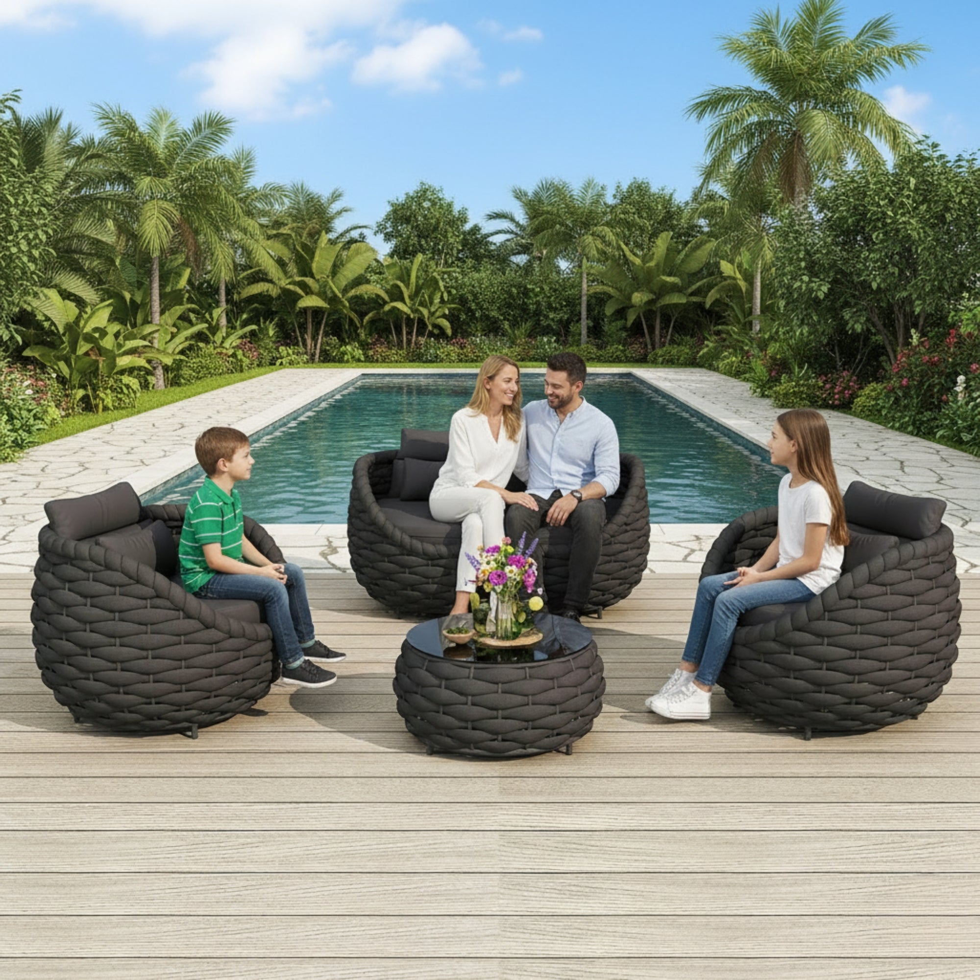 - All-Weather & Fade-Resistant Performance : Rain, sun, or humidity this set is made to perform. The UV-resistant rope and rust-protected frame ensure superior weather resistance, making it perfect for gardens, balconies, terraces, and poolside spaces.