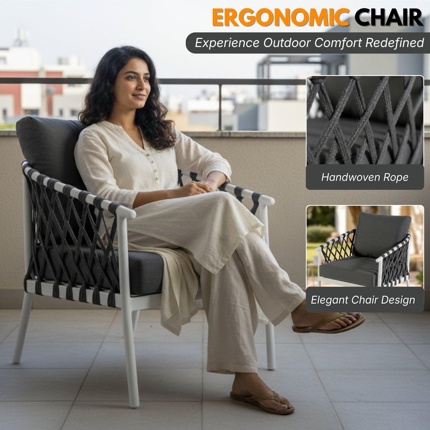 - Stylish Modern Patio Design : This elegant outdoor sofa set features a sleek rope-woven design with a neutral color palette that blends beautifully with gardens, patios, balconies, and poolside spaces. Its modern look instantly upgrades your outdoor living area while creating a relaxing and welcoming environment.