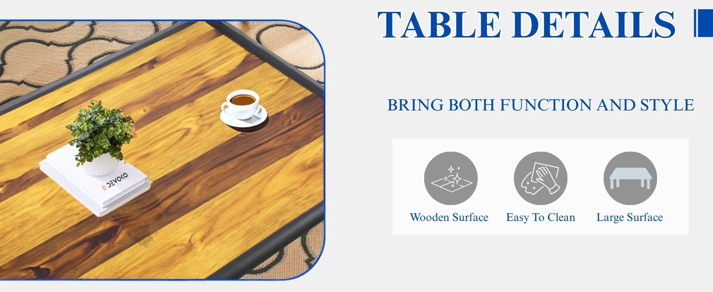 • Solid Wooden Top Coffee Table : The center table features a natural-finish wooden top set on a sturdy frame, providing a warm, organic aesthetic with strong support for food, drinks, and décor.