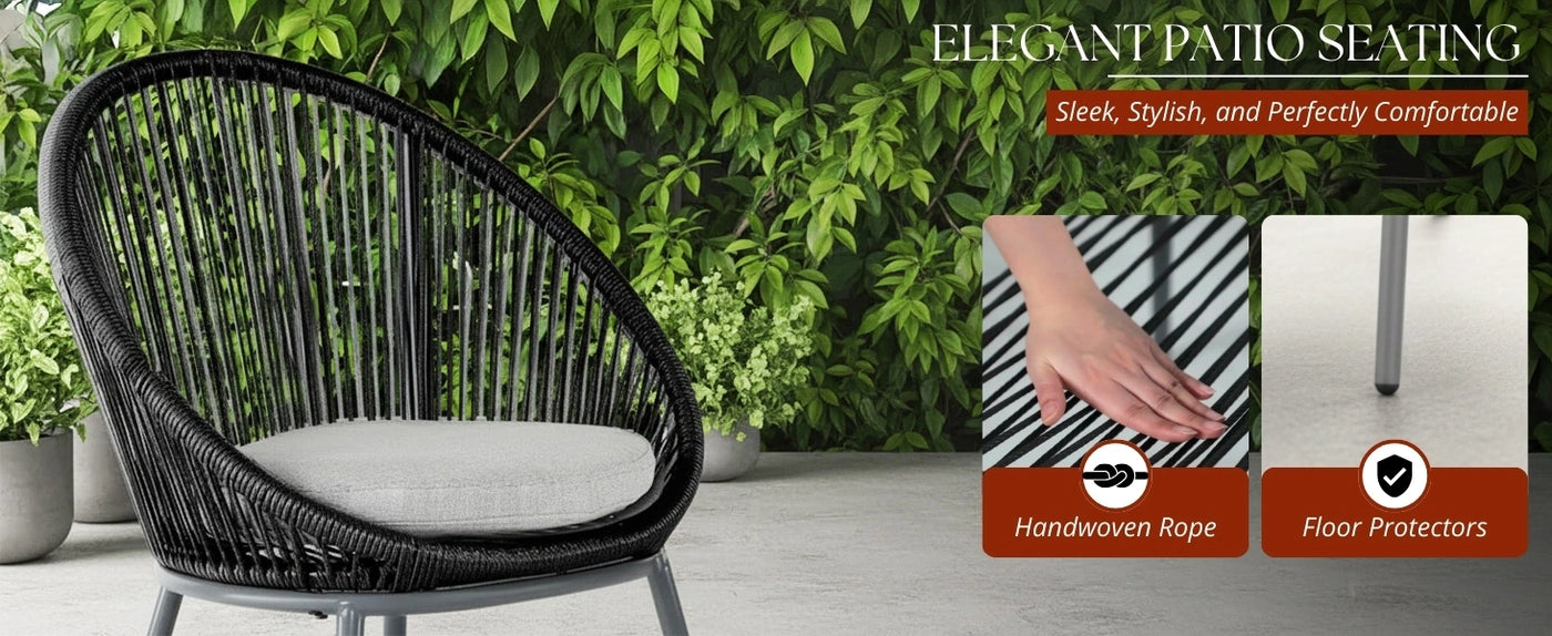 - Premium Rope-Wrapped Dining Chairs : Stylish and supportive chairs feature handwoven weather-resistant rope detailing, offering breathable comfort and a contemporary design for outdoor relaxation.