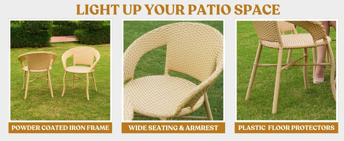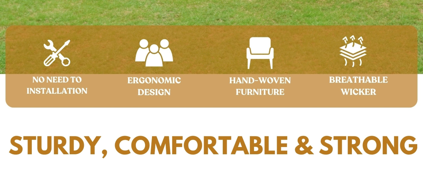 • All-Weather Beige Wicker : Handwoven HDPE rattan in a timeless beige finish resists fading, cracking, and the elements perfect for outdoor durability.