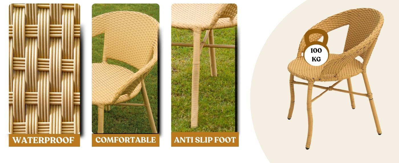 • Sturdy & Stable Frame : Built on a powder-coated metal frame, the set offers enhanced strength and stability for everyday outdoor use.