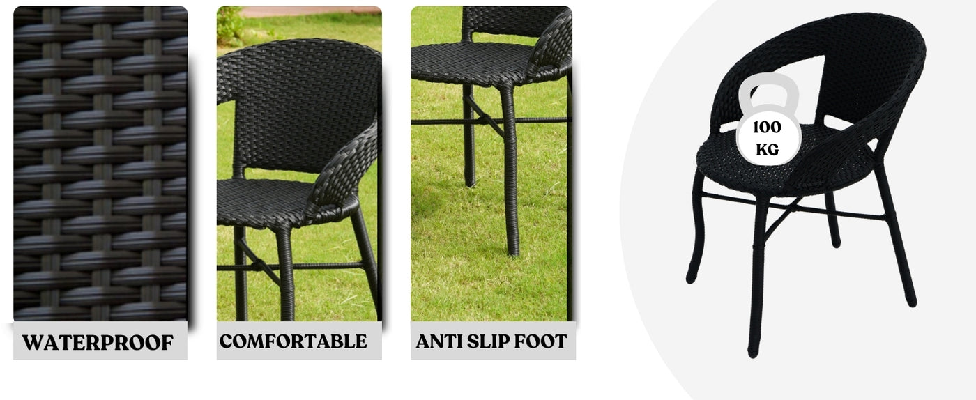 • Sturdy & Stable Frame : Built on a powder-coated metal frame, the set offers enhanced strength and stability for everyday outdoor use.