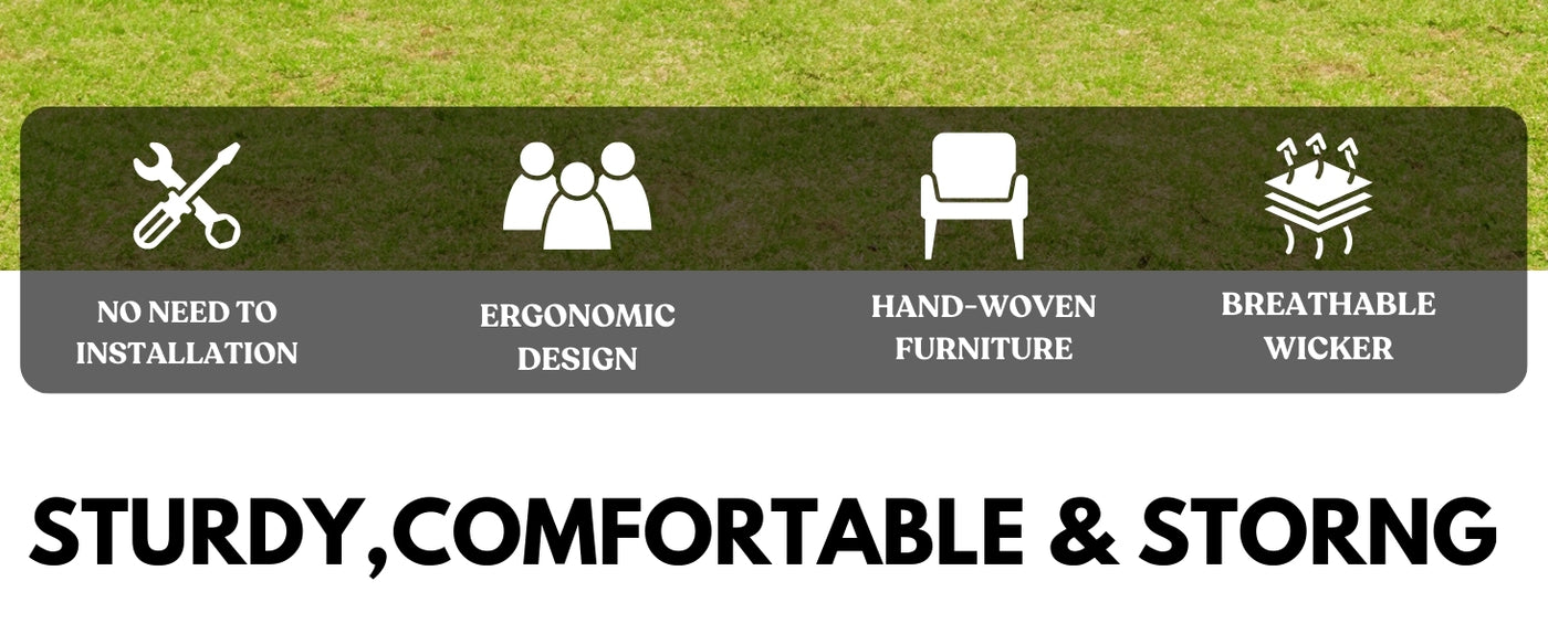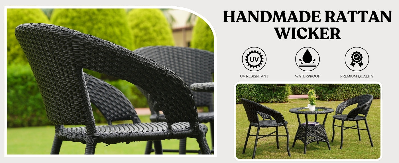 • All-Weather Black Wicker : Handwoven HDPE rattan in a timeless black finish resists fading, cracking, and the elements perfect for outdoor durability.