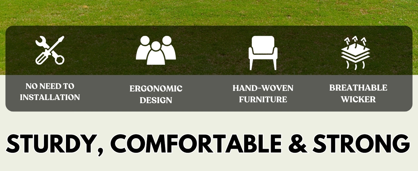 • Sturdy & Stable Frame : Built on a powder-coated metal frame, the set offers enhanced strength and stability for everyday outdoor use.