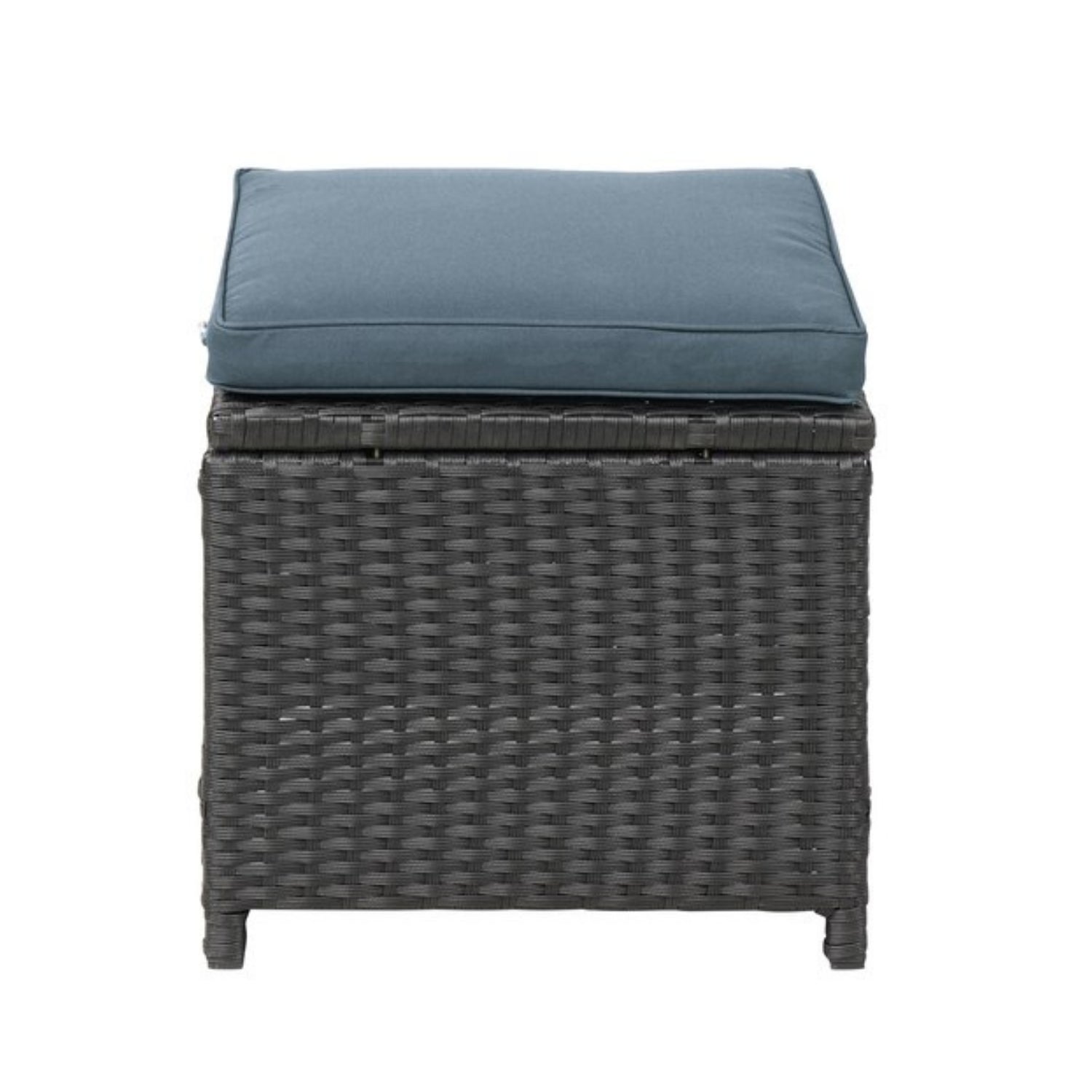 5-Piece Wicker Patio Conversation Set (Dark Brown/ Cyan Blue) is backordered and will ship as soon as it is back in stock.
