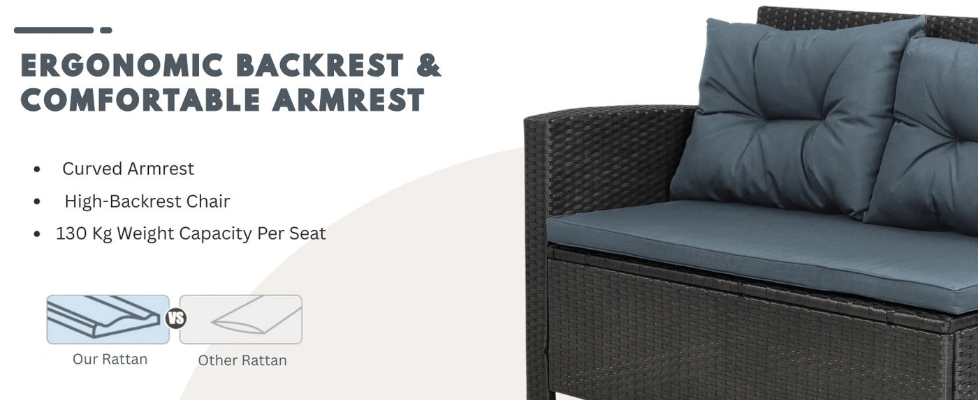 - Comfortable Cushions : Thick, soft cushions with washable, water-resistant covers for all-day relaxation.