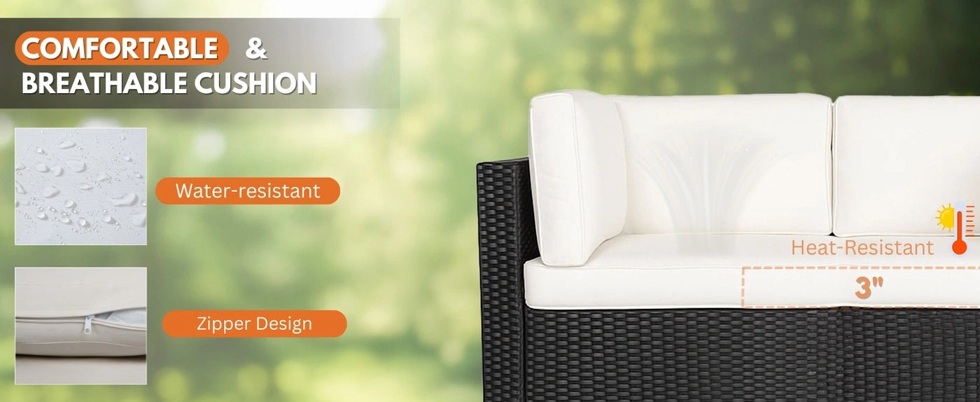 - All-Weather & UV-Resistant Materials : Built with a powder-coated metal frame and weather-resistant wicker, this set withstands sun, rain, and changing temperatures for year-round outdoor use.