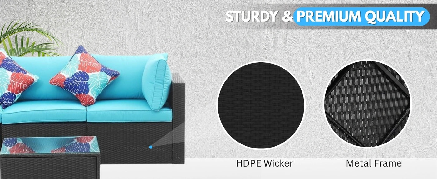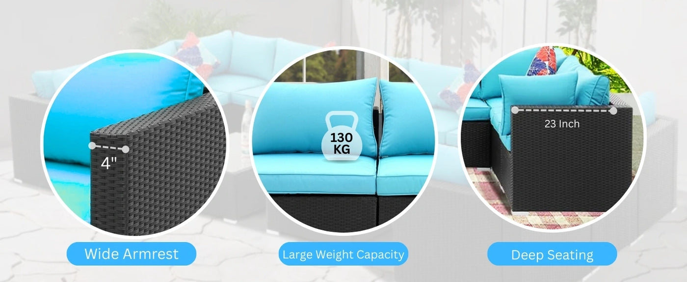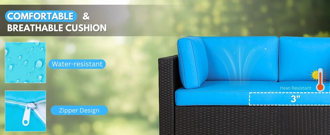6-Piece Outdoor Wicker Sofa Set (Black/Sky-Blue)