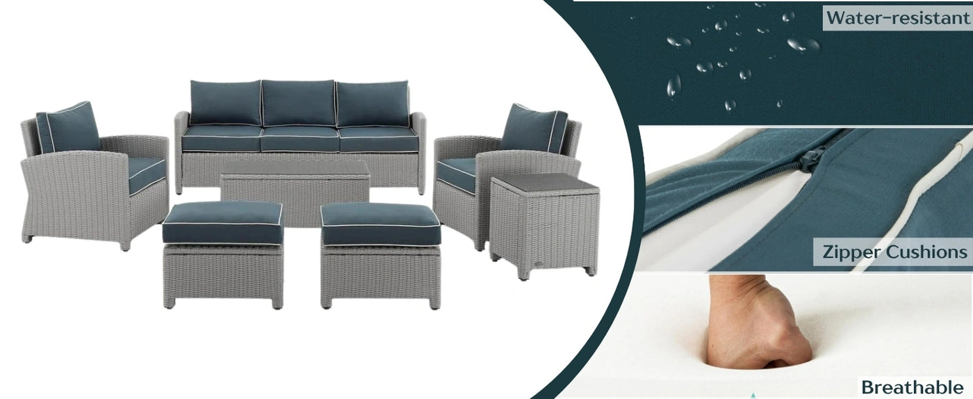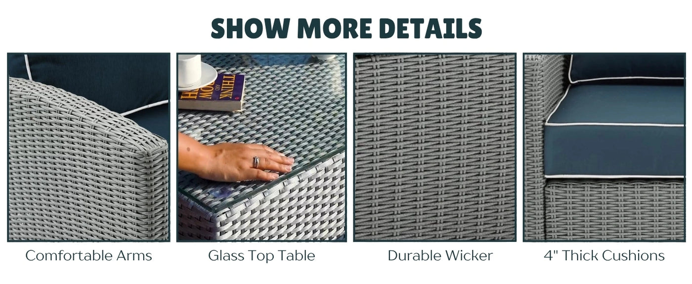 7 Piece Outdoor Wicker Conversation Furniture Set is backordered and will ship as soon as it is back in stock.