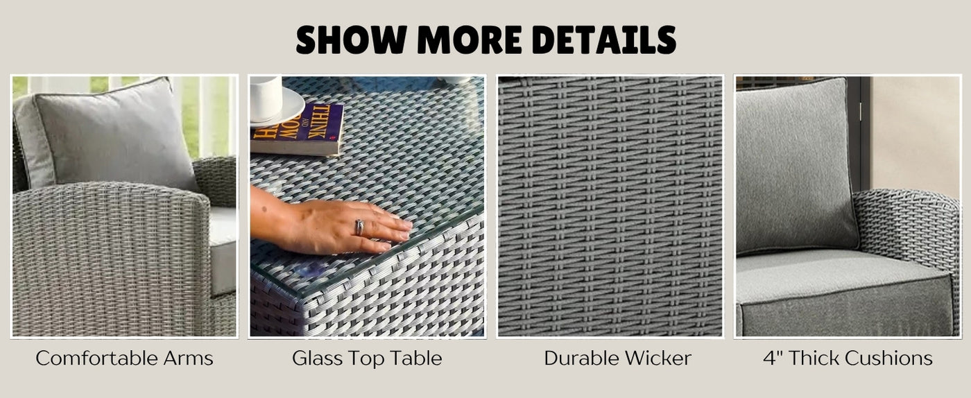 • Premium All-Weather Wicker Construction : Handwoven from high-density polyethylene (HDPE) wicker that is UV-resistant, fade-proof, and water-resistant ensuring durability through all seasons without cracking or peeling.