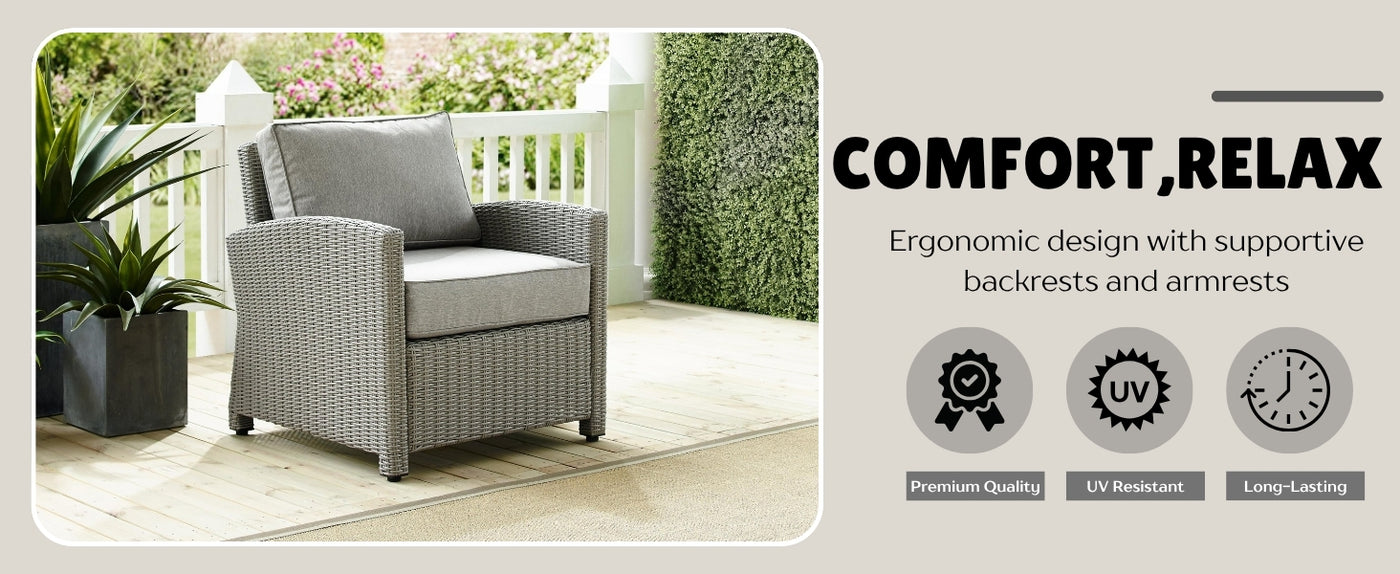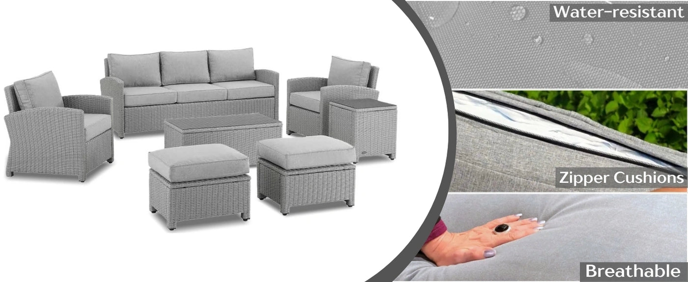 • Comfortable, Washable Cushions : Equipped with 4" thick foam cushions covered in water-repellent, UV-resistant fabric with hidden zippers for easy removal and machine washing ideal for long-term outdoor use.