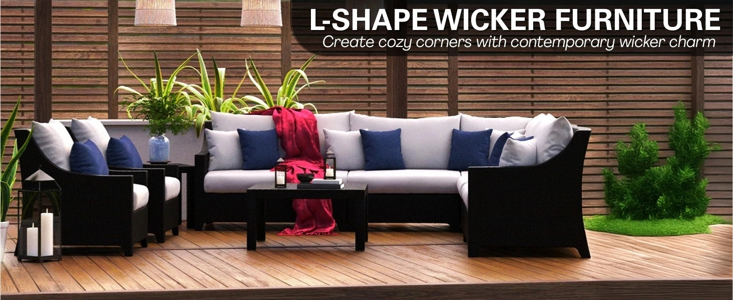 All Weather Outdoor Wicker Garden L-Shape Sectional Conversation Set
