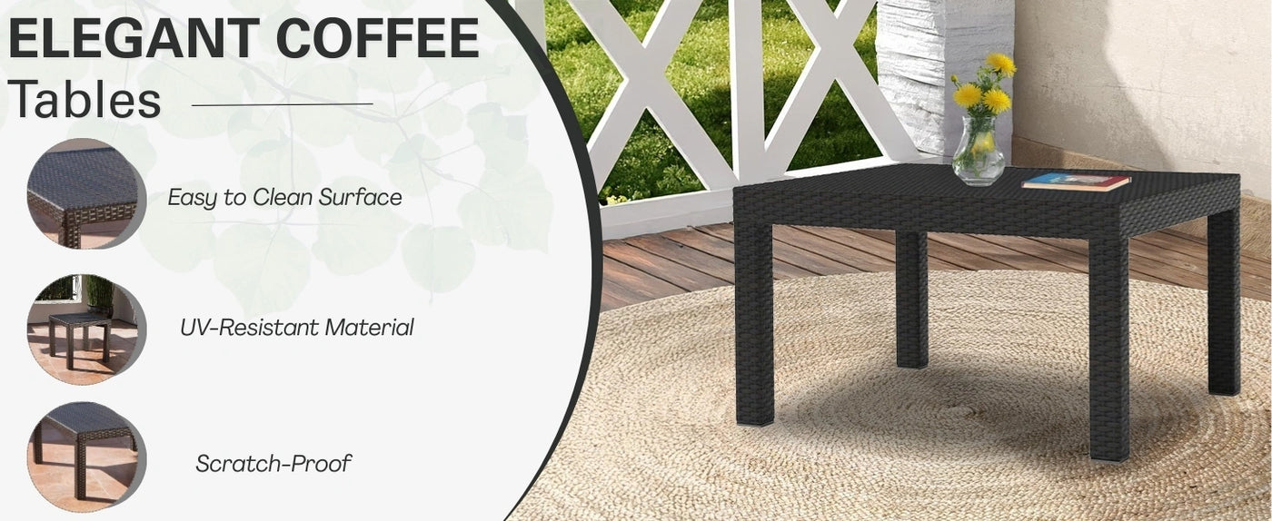 • Stylish Center & Side Tables : Includes a sleek and sturdy center & side table with a wicker top perfect for serving drinks, snacks, or decor items outdoors.