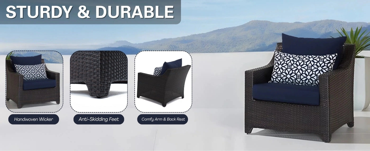 • Durable All-Weather Wicker Construction : Crafted with handwoven high-quality HDPE rattan wicker that is UV-resistant, weather proof, and fade-resistant built to withstand year-round outdoor conditions.