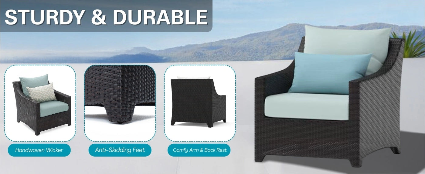 • Durable All-Weather Wicker Construction : Crafted with handwoven high-quality HDPE rattan wicker that is UV-resistant, weather proof, and fade-resistant built to withstand year-round outdoor conditions.