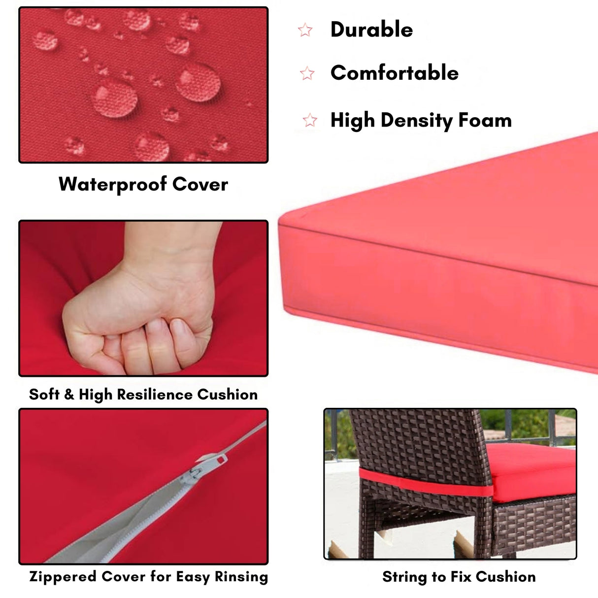 - Ergonomic and Comfortable Seating : Chairs feature ergonomically curved backrests and footrests to encourage long hours of relaxed sitting. Outfitted with thick, water-resistant cushions that are zippered, removable, and washable for easy maintenance and year-round comfort. The height ratio between table and chair is designed for optimal legroom and posture support.