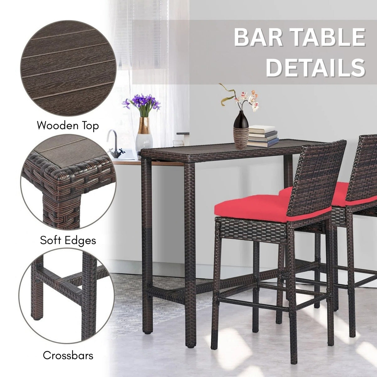 All-Weather Rattan Wicker Bar Set with High-Top Outdoor Table & Chairs