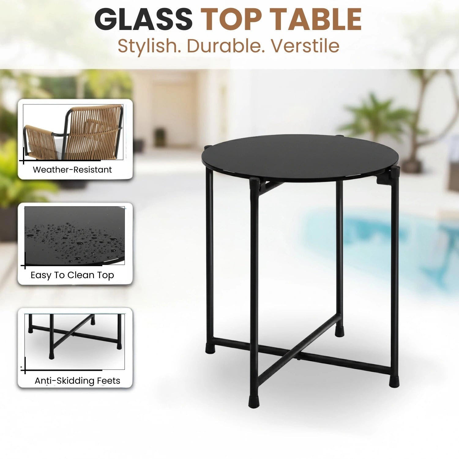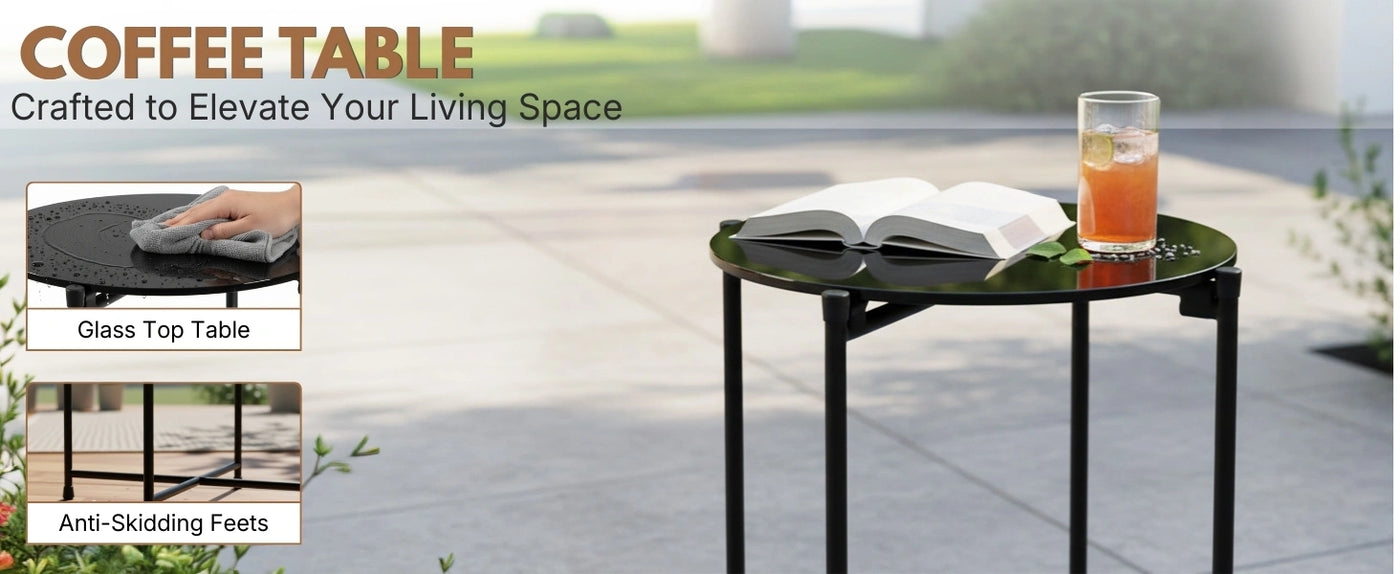 - Sturdy Glass-Top Table : Includes a glass coffee table for added stability and elegance perfect for morning coffee or evening drinks.