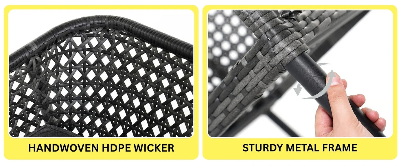 - Durable All-Weather Wicker Construction : Crafted with handwoven high-quality HDPE rattan wicker that is UV-resistant, waterproof, and fade-resistant—built to withstand year-round outdoor conditions.