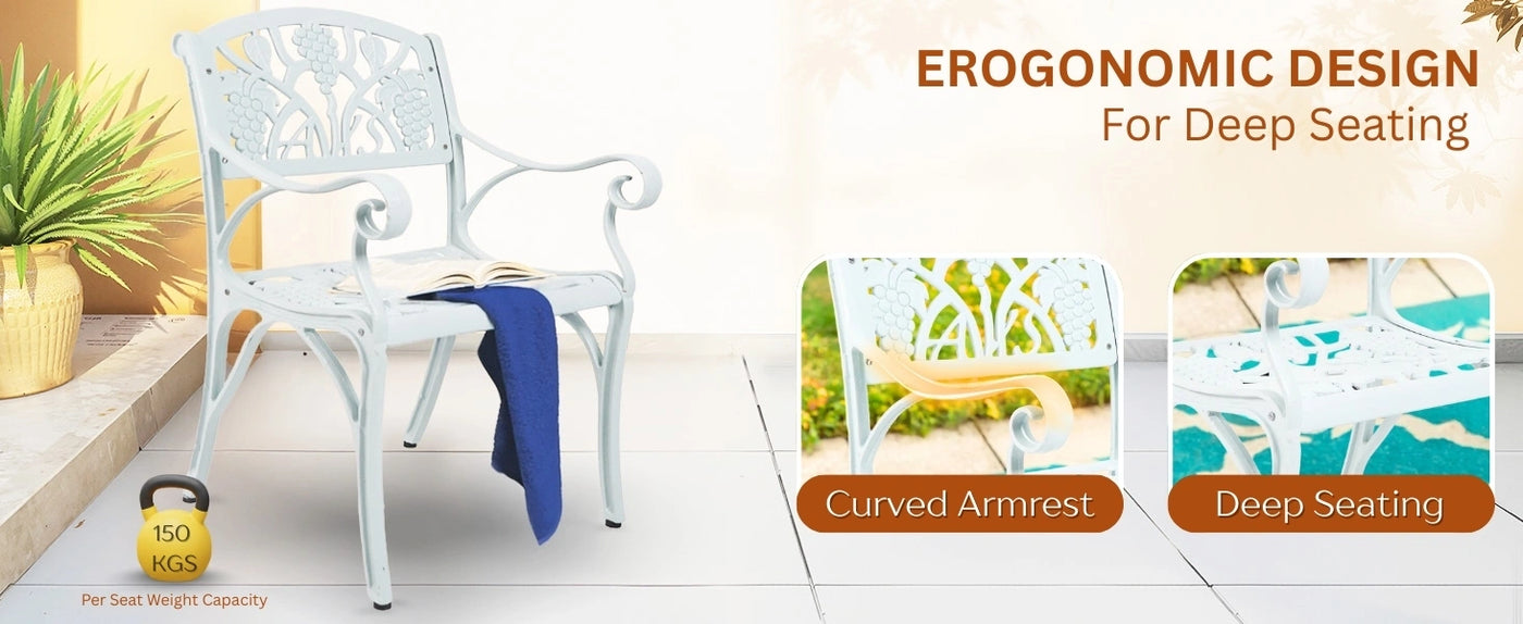 2 Chairs & 2-Tier Center Table : Includes two ergonomically designed chairs with strong load capacity (up to 150 kg each) and a sturdy 2-tier round table that supports up to 50 kg, offering both functionality and stability.