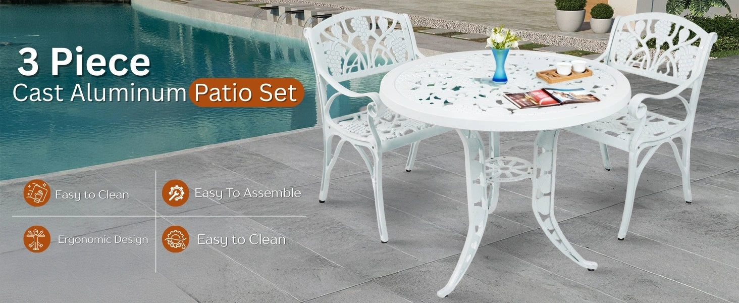 Outdoor 3-Piece Cast Aluminum Patio Bistro Set