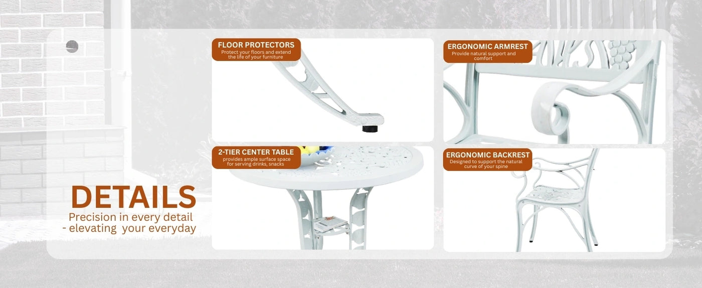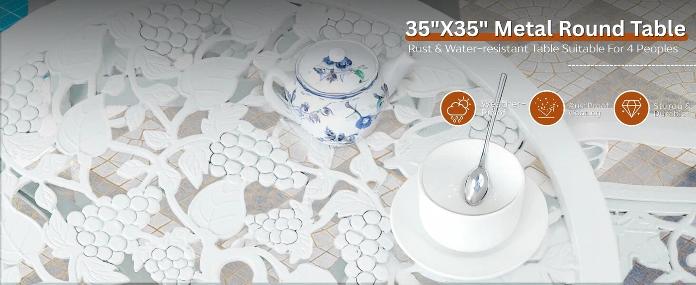 - Elegant & Low-Maintenance : Finished in a stylish white coating, this set combines timeless elegance with easy cleaning; simply wipe down to maintain its fresh look season after season.