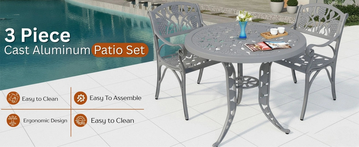 Outdoor 3-Piece Cast Aluminum Patio Bistro Set (Grey)