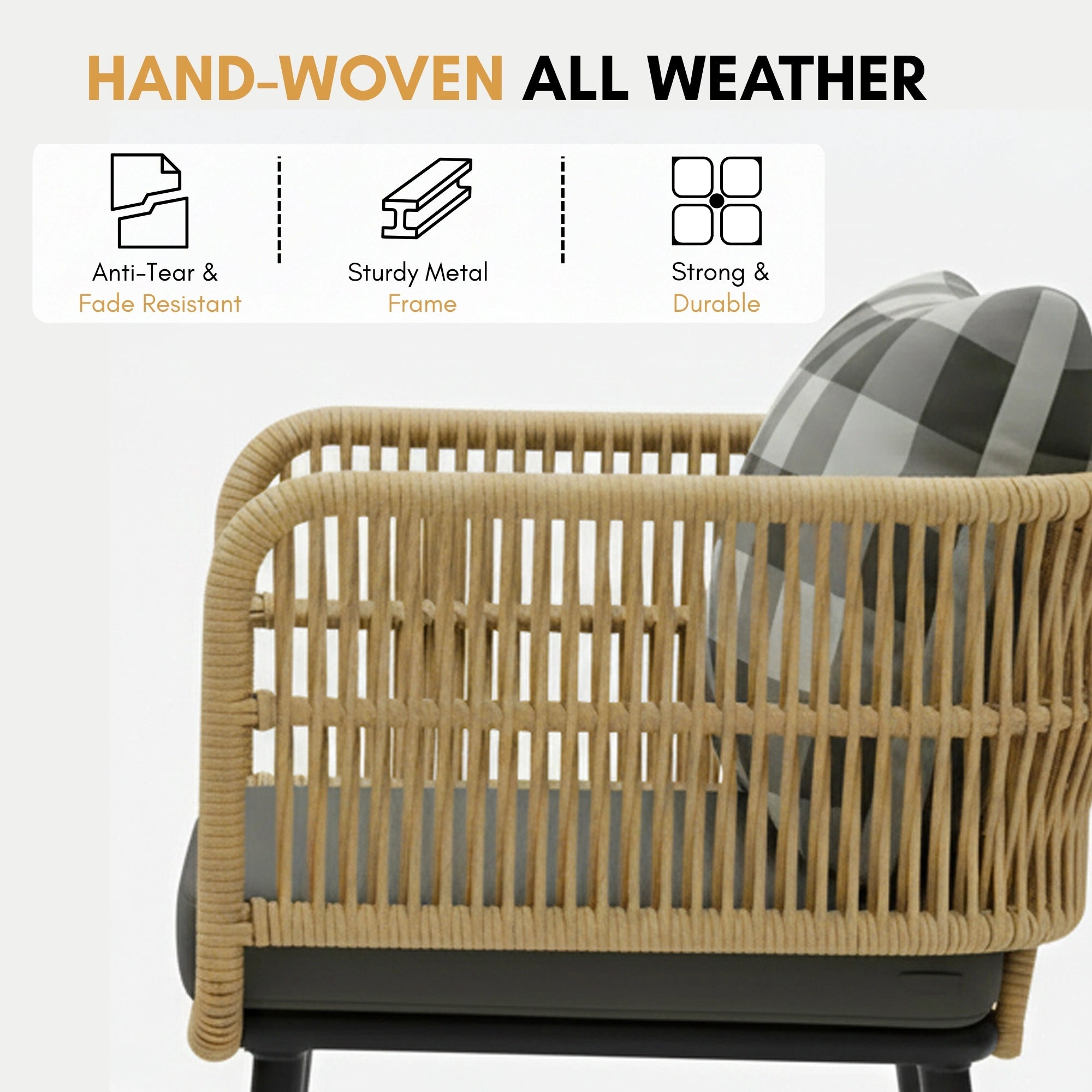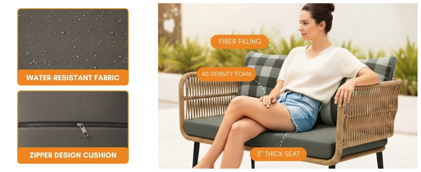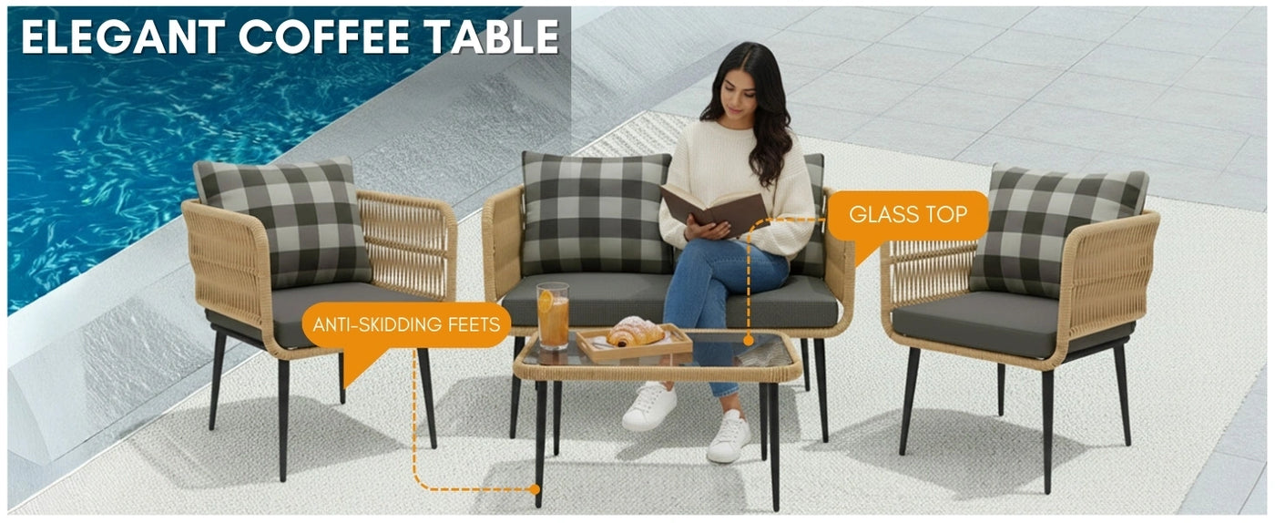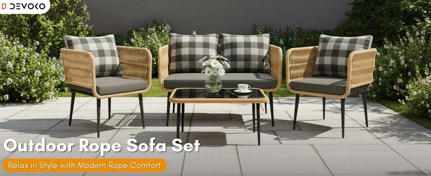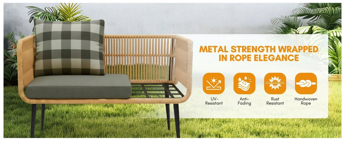 Outdoor 4-Seater Rope Conversation Set(Beige & Dark Grey)