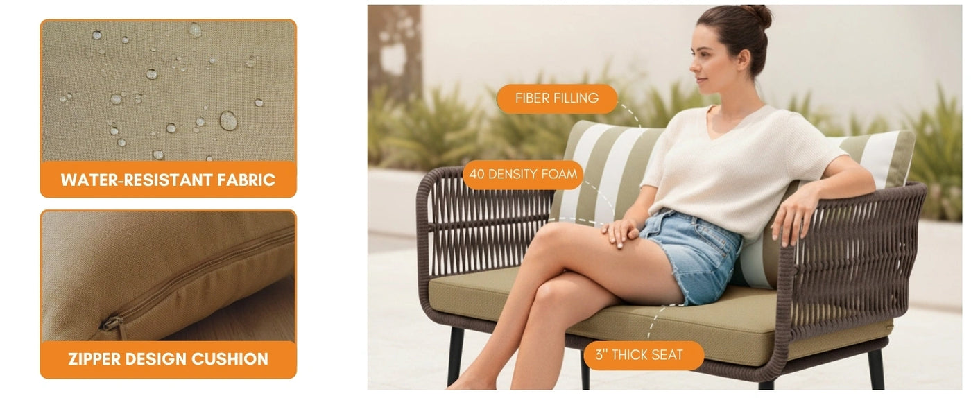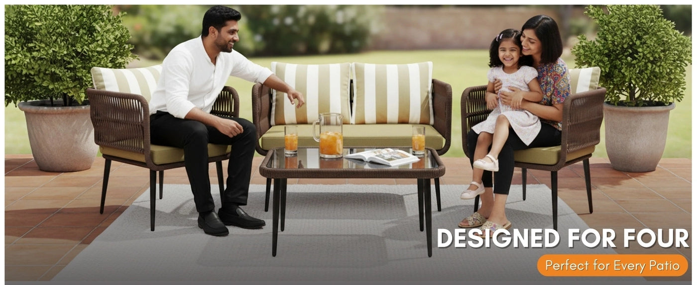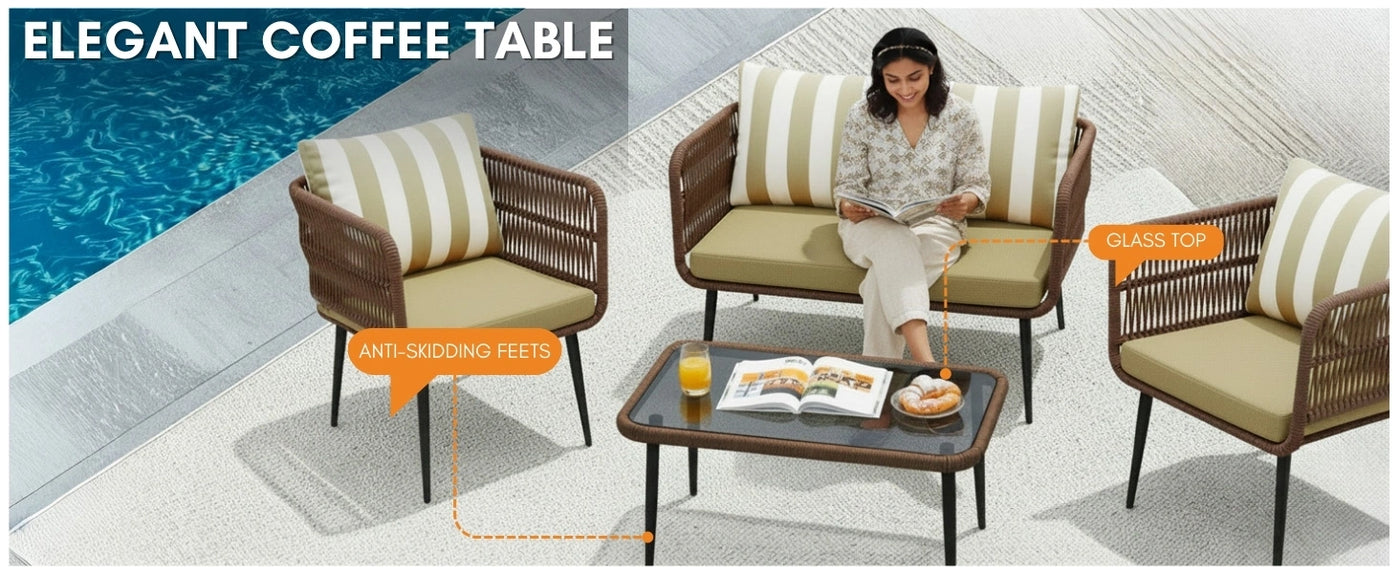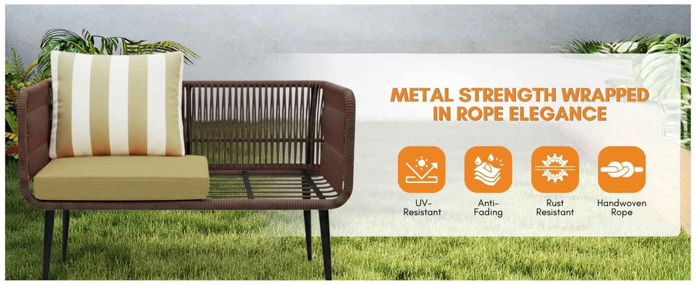 Outdoor 4-Seater Rope Conversation Set(Brown & Cream)