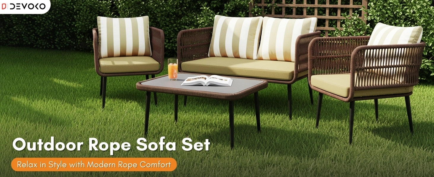 1. Rope Furniture - Clean with mild soap and water, avoid excess moisture, and cover when not in use to prevent wear from sun and rain.