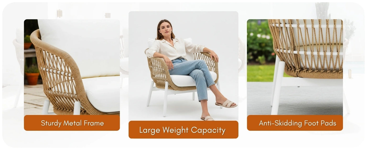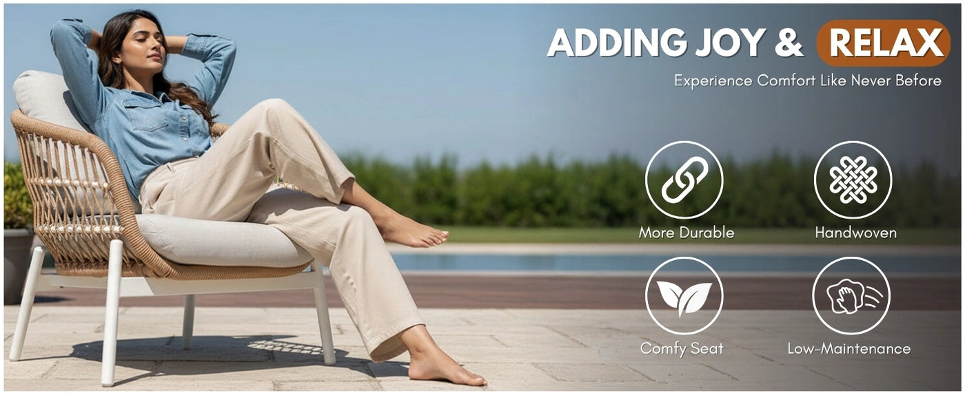 - Durable Rope Weave Design : Handwoven all-weather rope resists UV rays, moisture, and wear for long-lasting outdoor use.